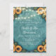 Design élégant en cuir à outils turquoise avec une bordure de tournesol brillante et un centre de défilement en relief, et avec une série de lumières brillantes. Parfait pour les invitations, accessoires et fournitures de fête à thème rustique, occidental ou boho.