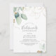 Cette invitation à déjeuner généreuse à la verdure et à la feuille d'or est parfaite pour un événement moderne. L'élégant design botanique présente des eucalyptus aquarellés clairs et aquarellés, agrémentés de feuilles de parties scintillant en or blanc.