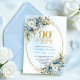 Invitation Delicate Boho Dusty Blue Floral Gold 90th Birthday