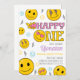 Emojis First Birthday Invitation fait partie de la collection Emojis First Birthday Party. Ce produit est composé de couleurs jaunes et roses, émoticônes. Fait principalement dans les couleurs jaunes avec des polices décoratives. Explorez d'autres produits correspondants dans notre magasin.