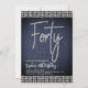 Une invitation à la fête d'anniversaire moderne, élégante, minimaliste et chic avec un thème denim et diamants. Il dispose d'un arrière - plan denim, calligraphie moderne personnalisée avec un effet de strass (numérique) pour le mot "quarante" et typographie en blanc. Un design chic "denim et diamants" pour une femme à son quarantième anniversaire !