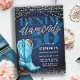 Une invitation moderne rustique, élégante et chic à la fête du 50ème anniversaire pour les femmes avec un thème denim et diamants. Il comprend un arrière - plan en denim, un bleu, une cowgirl de déclaration botte en acrylique et typographie en blanc, avec la calligraphie personnalisée sur le mot "diamants" qui a également un effet de strass. Ajoutez des lumières rustiques, une arrosée de "diamants" et voilà ! Un design chic, élégant et classe "denim and diamants" pour une femme moderne à son cinquantième anniversaire. Cinquante ans et élégance rustique.