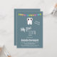 Invitation à ma fête de première dent avec un dessin d'une grande dent blanche avec un sourire kawaii mignon et de grands yeux heureux.