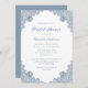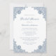 Élégante invitation à la douche nuptiale bleu poussiéreux avec dentelle florale bleu poussiéreux et une police de caractères élégante. Personnalisez facilement en ligne. Objets correspondants disponibles pour compléter ces invitations vintages à la douche nuptiale bleu poussiéreux.
