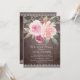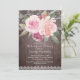Design floral rose romantique à l'aquarelle dessinée à la main rose pastel, pêche et marsala avec dentelle vintage blanche sur arrière - plan de grains de bois rustique. Chic et élégant, grandes invitations à dîner de répétition pour mariage vintage, mariage rustique ou mariage campagnard au printemps. Voir toutes les pièces correspondantes dans la collection ci-dessous.