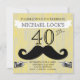 Célébrez avec style avec ces invitations d'anniversaire pour hommes rétro et modernes, avec le numéro imprimé sur un fond jaune à texture de bois rustique et une moustache pour ajouter de l'amusement. Pas seulement pour un anniversaire, parfait aussi pour un enterrement de vie de garçon !