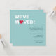 Cette invitation simple et moderne de pendaison de crémaillère comporte les mots "que nous nous sommes déplacés !" et un coeur rouge. Humeur 4 de © mignonne