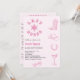 Un arrière - plan rose vif. Décoré avec des icônes de fille de vache rose. Personnalisez et ajoutez le nom de la mariée à être et les détails du parti. Texte : Dernier Rodeo. Retour : itinéraire du week-end