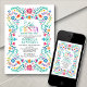 Mariachi, margaritas et souvenirs ! Lancez la fête avec ce design de fêtes folkloriques mexicaines. Le texte coloré et l'oeuvre d'art (dessinée à la main par Lively Scribe) donnent à ce design une ambiance fantaisiste mais élégante. Parfait pour les latins de votre vie. Ou une fête qui se trouve juste à côté du Cinco de Mayo ou de Dia de los Muertos. Commandez vos invitations imprimées et les fournitures de fête ou téléchargez vos invitations numériques dès maintenant pour une journée qu'ils n'oublieront jamais !