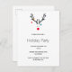 Une tête de renne mignonne, drôle, moderne, minimaliste et abstraite. Arrière - plan blanc. Une invitation à la fête parfaite pour un Noël, une fête de vacances entre amis, en famille ou entre collègues. Modèles pour date, lieu, RSVP détails. Lettres noires. Dos : blanc. Conseil : Si vous ne voulez pas qu'il ressemble à une carte postale, cliquez sur customiser, allez à l'arrière et retirez le séparateur et le timbre postal.