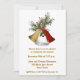Invitation festive de fête avec cloche blanche, rouge et or, branche de pin et arc rouge.
