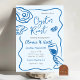 Invitation Fiançailles de vin au rôti d'huître bleu, Invitation de Fête des mariées à cocktails de l'huître bleu, Fête des mariées d'huître au champagne côtier
