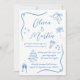 Invitation Dessin à la main Fun Doodle Blanc Bleu Mariage