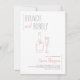 Ce design unique ajoute une touche moderne à un thème traditionnel de douche à nuptiale fleurie. L'avant de cette invitation comprend "Brunch and bubbly" dans le coin supérieur gauche et les détails de la douche dans le coin inférieur gauche. Au centre, il y a un dessin continu d'une bouteille avec un étiquette de coeur d'or et un verre de champagne avec des bulles de parties scintillant en faux or. Les deux ensembles de texte sont alignés sur une ligne verticale rose à la cravate dans le jeu de couleurs et le style d'illustration. Pour équilibrer cette conception, dans les coins supérieur droit et inférieur gauche, il y a aussi la fausse parties scintillant d'or. Nous avons utilisé une palette de couleurs féminines, rose, orange, violet, gris et or, parfait pour des célébrations à l'année ! Ces cartes s'inversent à un motif floral abstrait aux formes organiques et aux éléments de gribouillis dessinés à la main. Cliquez sur "Personnaliser" pour commencer ! Faites-moi un message par le bouton ci-dessous si vous avez des questions sur le design !