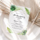 Cette destination géométrique tropicale de ménage invitation est parfait pour une simple célébration de maison nouvelle. Le design se compose de palmiers verts aquarelés peints à la main et de feuilles de bananes soigneusement arrangés en de beaux bouquets, ornant un cadre géométrique doré.