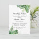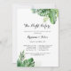 Cette destination tropicale nuit avant le dîner de répétition invitation est parfait pour une simple répétition mariage. Le design se compose de palmiers verts aquarelés peints à la main et de feuilles de bananes soigneusement arrangés en de beaux bouquets.