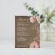 Invitation Détails de mariage Bois Rustique Fleurs Rose Pâle