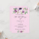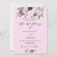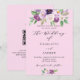 Un fond rose. Décoré de fleurs et de verdure aquarellées violettes. Personnalisez et ajoutez vos noms et détails de la fête.