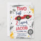 Deux Fast 2 Curious Red 2nd Birthday Invitation Deux rapide 2 curieux! Démarrez vos moteurs ! Customisez cette mignonne invitation avec vos propres infos!