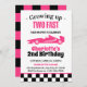 Célébrez le grand jour de votre petite speedster avec cette invitation personnalisée Two Fast Girl 2nd Birthday Party! Personnalisez vos invitations avec le nom, la date et les détails de l'événement. Avec un design amusant et inspiré de la voiture de course Personnalisable avec tous les détails de votre événement