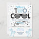 Cet adorable invitation de deuxième anniversaire possède des lunettes de soleil, des palmiers et des confettis.