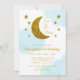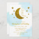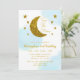 Deux la lune ! 2ème anniversaire avec lune d'or et étoiles avec arrière - plan d'aquarelle bleue