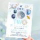 Invitation Deux La Lune Blue Gold Space Anniversaire