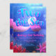 Cette invitation utilise le bleu et le rose comme palette principale de couleurs. La profondeur de la conception est prise en compte en donnant aux poissons l'air très loin du point de vue principal. Les effets d'éclairage sont utilisés spécialement dans la queue de sirène, pour en faire l'étoile de la conception