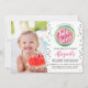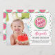 Cette jolie invitation sur le thème de la pastèque est parfaite pour une fête de deuxième anniversaire pour une petite fille qui a deux ans cet été. Remplacez facilement l'échantillon de photo sur la moitié gauche de la carte par la photo de votre enfant. Sur la moitié droite, les mots "Two Sweet!" apparaissent en blanc sur une pastèque ronde rose et verte. Ajoutez le nom de la fille d'anniversaire en script rose et les détails de la fête en caractères sans serif non noirs. Les confettis rose et vert ornent les bords gauche et droit. Le revers de la page présente un motif répétitif du même motif de melon aquarelle sur un arrière - plan blanc.