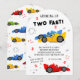 Deux Fast 2nd Birthday Kids Racing Cars Invitation dispose de voitures de course mignonnes et colorées avec le texte "Two Fast" dans le script moderne de typographie noire accentué avec le numéro 2 et doodles. Parfait pour les enfants fêtes de deuxième anniversaire. Envoyez par la poste ou téléchargez simplement l'invitation numérique partageable téléchargeable. Conçu par Evco Studio. Pour la coordination des éléments, voir www.zazzle.com/store/evcostudio