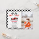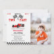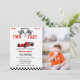Deux voitures rapides font la course sur les invitations de fête d'anniversaire de ces mignons enfants avec une course de voiture rouge. Thème de voiture de course mignon pour une fête de 2ème anniversaire avec l'illustration d'une voiture rouge vintage avec les mots "Growing up too fast."