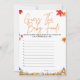 ESPÉRER LA NOURRITURE BÉBÉ Easy Baby shower Game Un petit Citrouille est sur le chemin Thème Ajoutez un élément amusant et interactif à votre baby shower avec notre adorable GUESS THE BÉBÉ ALIMENTATION Easy Baby shower Game Un petit Citrouille est sur le thème Way! Ce jeu festif présente un design citrouille charmant et des couleurs automnales, parfaites pour les hôtes de tous âges. Caractéristiques clés : automne design floral : Un thème saisonnier et festif avec des couleurs chaudes et des éléments naturels. Matériaux de haute qualité : Imprimés sur des cartons de qualité supérieure pour une sensation de luxe. Message personnalisé : Customisez le jeu avec le nom du bébé, la date d'échéance et les détails de la fête. Enveloppes assorties incluses : vient avec enveloppes assorties pour faciliter l'envoi. Guess the baby food game : Comprend un jeu de devinette amusant où les clients essaient d'identifier les articles pour bébés à partir de descriptions ou de photos. baby shower devinez le jeu pour bébés, jeu de baby shower d'automne, jeux de baby shower, jeux de fête, décorations de baby showers, décoration de fête, poster, affiche colorée, affiche personnalisée, thème de baby shower, thème d'automne, thème d'automne, design floral, design citrouille, décoration de baby shower.