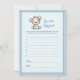 Adorable ours brun et bleu pour le baby shower d'un garçon. Devinez ce jeu de baby shower de nourriture pour bébé. Couverture bleue avec bordure bleue cousue pour arrière - plan. Des modèles ont été fournis sur le dos.