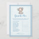 Adorable ours brun et bleu pour le baby shower d'un garçon. Devinez Le jeu baby shower de prix. Couverture bleue avec bordure bleue cousue pour arrière - plan. Des modèles ont été fournis sur le dos.