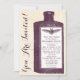 Cette invitation présente une vieille illustration en noir et blanc d'un médicament, d'un potion ou d'une bouteille de poison avec une chauve-souris sur une texture de papier ancien. Le texte peut être modifié pour dire ce que vous voulez.
