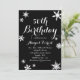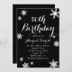 Un parfum de flocons de neige décore cette élégante invitation à la fête d'anniversaire en argent, sur un arrière - plan noir classique. Si d'autres éléments de coordination sont nécessaires pour votre événement, contactez-nous à prettyfancyinvites@gmail.com avec votre demande.
