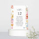 Asseyez vos invités facilement et dans le style avec votre ressort Florales multicolores Tableau Numéro de siège Cartes de siège. Fabriqué avec des fleurs rouges, bleues, roses, blanches et jaunes.