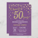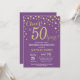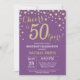 50e anniversaire Invitation avec Parties scintillant violet et or Arrière - plan diamant . Confetti d'or. Anniversaire adulte. Hommes ou Femmes Anniversaire. Pour plus de personnalisation, cliquez sur le bouton "Customiser" et utilisez notre outil de conception pour modifier ce modèle.
