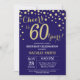 60e anniversaire Invitation avec le Arrière - plan Diamant de la Parties scintillant bleue et d'or de la Marine. Gold Confetti. Anniversaire adulte. Hommes ou femmes, anniversaire.