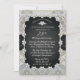 Invitation de 75e anniversaire de mariage brillamment sophistiquée et élégante avec un overlay à motif de dentelle sur un fond à l'aspect or blanc et un ruban de satin imprimé faux noir avec des diamants en forme de cœur, en goutte et ronds imprimés faux disposés dans un cadre rectangulaire arrondi. Le ruban de satin faux noir et le fond or blanc et dentelle sont continués au verso pour un look soigné et sophistiqué. Création originale de Holiday Hearts Designs (tous droits réservés). Veuillez noter que tous les embellissements sont imprimés.
