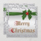 Élégantes invitations de fête de Noël personnalisées. Élégant et glamour invitations de la fête de Noël annuelle pour des événements familiaux, informels ou officiels. Avec un joli arc de ceinture vert soyeux festif avec 3 perles de baies rouges imprimé image sur un arrière - plan argenté classe étonnant avec un cadre chic et branché glitz et bordure glam cadre de pierres blanches bijoux diamants. Sur le devant se trouve le libellé "Joyeux Noël" dans un vieux texte curviligne fantaisiste. Il s'agit d'une image imprimée et ne peut pas être modifiée à d'autres termes. L'inverse a les mêmes images arrière - plan, arc et diamants et l'espace pour vos détails d'événement. Un bel invitation saisonnier pour les vacances de Noël. Ces cartes romantiques originales, uniques, brillantes, chic et désuètes sont imprimées/décorées de part et d'autre. Si vous avez besoin d'aide pour customiser votre produit, veuillez me contacter par l'intermédiaire de mon magasin et je serai heureux de vous aider. CERTAINS ÉLÉMENTS SONT UTILISÉS PAR SNAPPYSCRAPPY À L'ADRESSE HTTP://SNAPPYSCRAPPY.COM. Tous les produits sur Zazzle ont des images imprimées plates.