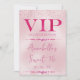 Cette invitation de fête VIP à accès total présente un design scintillant et féminin sur fond rose. Le titre VIP est imprimé en haut, suivi du titre de l'événement. Des rangées de diamants roses séparent le texte. Des confettis scintillants ornent les bordures supérieure et inférieure. Le lieu et l'heure de la fête ou de l'événement sont imprimés au verso. C'est parfait pour une fête d'anniversaire, un sweet 16, une douche de mariée ou autre célébration élégante.
