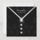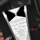 Faites une déclaration de sophistication intemporelle avec ce faire-part de mariage inspiré de tuxedo. Placé contre un damas gris perle avec garniture de soie, le design comprend une poche de plis de soie rouge frappante et un monogramme de noeud d'amour diamant symbolisant l'unité. L'avant dévoile un arc en tuxedo raffiné avec des boutons en diamant sur un riche arrière - plan noir damassé ou, avec un second regard, la silhouette gracieuse d'un verre martini avec une tige en diamant, mêlant élégance classique avec un soupçon de modernité. Parfait pour les affaires de cravates noires, les soirées glamour ou les couples qui aiment une touche de scintillement et de sophistication.