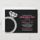 Les invitations à la bachelorette mariage moderne et élégante présentent un design d'anneau de fiançailles diamant avec un look parties scintillant pétillant et des couleurs noir, rose, platine gris et blanc qui peuvent être customisés. Personnalisez le texte pour la soirée de vos filles.