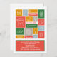 Une conception gaie comportant des icônes de BBQ de nourriture, d'ustensiles et d'équipement en rouge, vert, l'or et des boîtes grises. Perfectionnez pour votre prochain barbecue. (Point de gel)