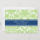 Invitations faites sur commande de dîner de répétition dans le bleu marine foncé moderne et élégant, le motif vintage vert pomme et blanc lumineux de damassé florale chic et classique. Personnalisez le texte pour créer une invitation unique pour votre dîner de répétition de mariage. Contactez-nous pour demander un changement de couleur. Disponible dans beaucoup de produits assortis de mariage.
