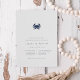Préparez-vous pour la grande journée avec nos élégantes invitations à dîner de répétition estivale, avec un style nautique classique avec un look propre et minimaliste et une touche légère de vie marine. Le design comporte une illustration de crabe bleu en haut, avec un élégant bloc et des lettres en italique en bleu marine. Inclut l'espace pour la répétition de cérémonie et les détails du dîner. Parfait pour les dîners de répétition nautiques, estivaux ou en bord de plage, surtout si le crabe est au menu !