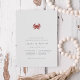 Préparez-vous pour la grande journée avec nos élégantes invitations à dîner de répétition estivale, avec un style nautique classique avec un look propre et minimaliste et une touche légère de vie marine. Le design comporte une illustration de crabe rouge en haut, avec un élégant bloc et des lettres en italique en bleu marine. Inclut l'espace pour la répétition de cérémonie et les détails du dîner. Parfait pour les dîners de répétition nautiques, estivaux ou en bord de plage, surtout si le crabe est au menu !