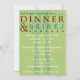 Invitation dîner avec grande fourchette et couteau sur un arrière - plan vert vif. Un grand texte contemporain en marron et bleu remplit l'en-tête d'invitation d'un bout à l'autre, et invitation vos invités à se réunir pour le dîner et les boissons. Customisez avec les informations de votre parti. Choisissez votre propre papier, police, taille et couleur.