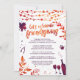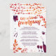 Un dîner de Thanksgiving amusant Invitation par The Spotted Olive avec des éléments d'aquarelle orange et aubergine, y compris des feuilles, des branches, des verres à vin, une bouteille de vin, un wishbone et une glande avec les mots "Fêtons l'Action d'Amabilité" mis dans une police de style brosse. Copyright ©2016 par The Spotted Olive, Tous droits réservés.